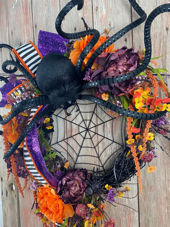 Spider Halloween Wreath Creepy Spooky Decor Halloween Porch Decoration Floral Halloween Wreath Spiderweb Grapevine Wreath Etsy