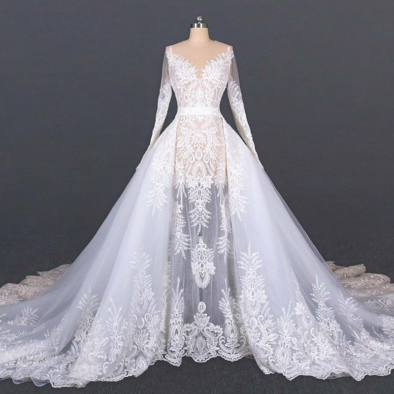 French Chantilly Lace Cathedral Wedding Dress Chicely